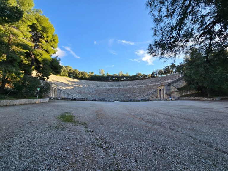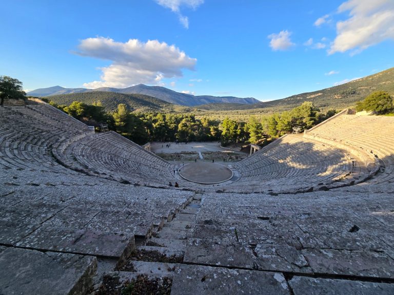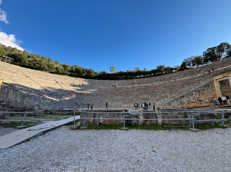 Today we went to the Isthmus Bridge over the Corinth Canal before heading over to Mycenae. Once we got there, we visited the ruins of a beehive grave, which is where they buried their higher class. We saw the Lion’s Gate and the remnants of the palace, which had been destroyed due to earthquakes and fires. We then traveled to Epidarus, where we observed the acoustics of the amphitheater and saw the temple of Asklepios, a healing site of great renown.