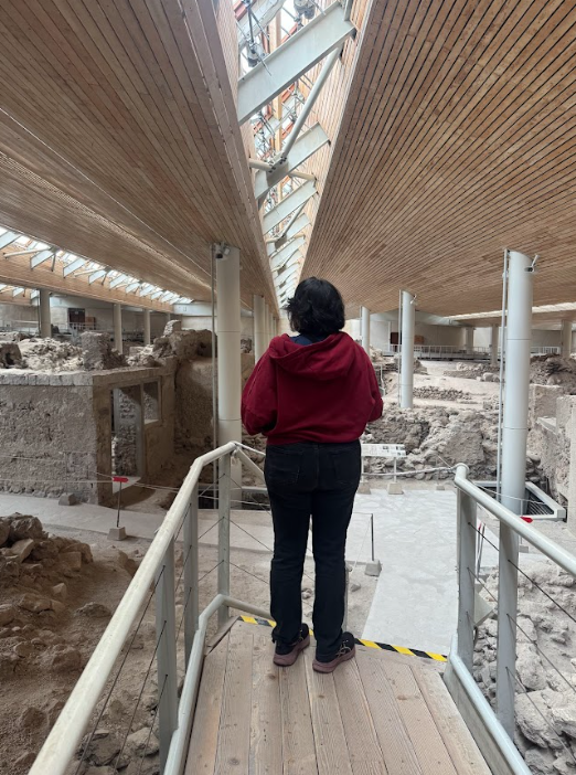 There have been many times where I was on a site visit and was overcome with gratitude for the chance to be there. History is a complex web of memory and chance. The present we have now is born atop the precarious chaos of the past, and it’s only because of this specific chaos that just days ago I could stand in the ancient city of Akrotiri. A city twice destroyed - first by earthquake, then by lava - finally unearthed to reveal just how advanced ancient cities were. Functioning sewer systems, airflow within houses, and even homes that were three stories tall. It’s no wonder they were able to evacuate before the volcano erupted. Standing in an archaeological excavation was beyond my wildest dreams, and to be so privileged to be born in a time where I can do so is more than I could ever find words to describe.